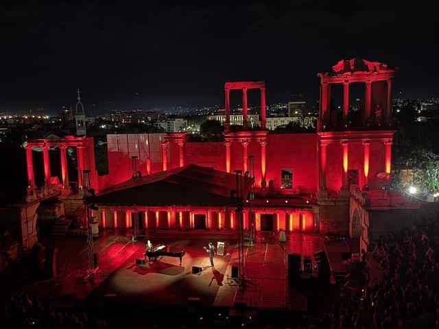 NICK CAVE AND COLIN GREENWOOD, PLOVDIV AMPHITHEATRE, BULGARIA, PHOTO BY TOM HOLLAND